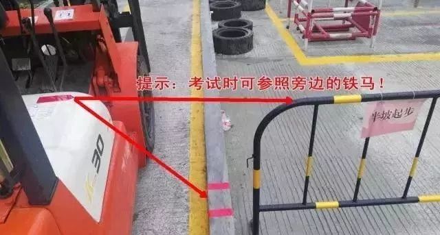 半坡起步:車上右手邊有一紅色箭頭,半坡停車時,車上箭頭要對準場地邊上的指定區域(紅線標注的);稍作停頓即可,起步時,左腳放離合要慢,右腳同步加大油門,注意同步操作,便于起步。