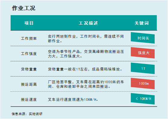 南昌基地生產產線密集,每個環節環環相扣,需要叉車連續不間斷的來回搬運,整體工況良好,具體如下: