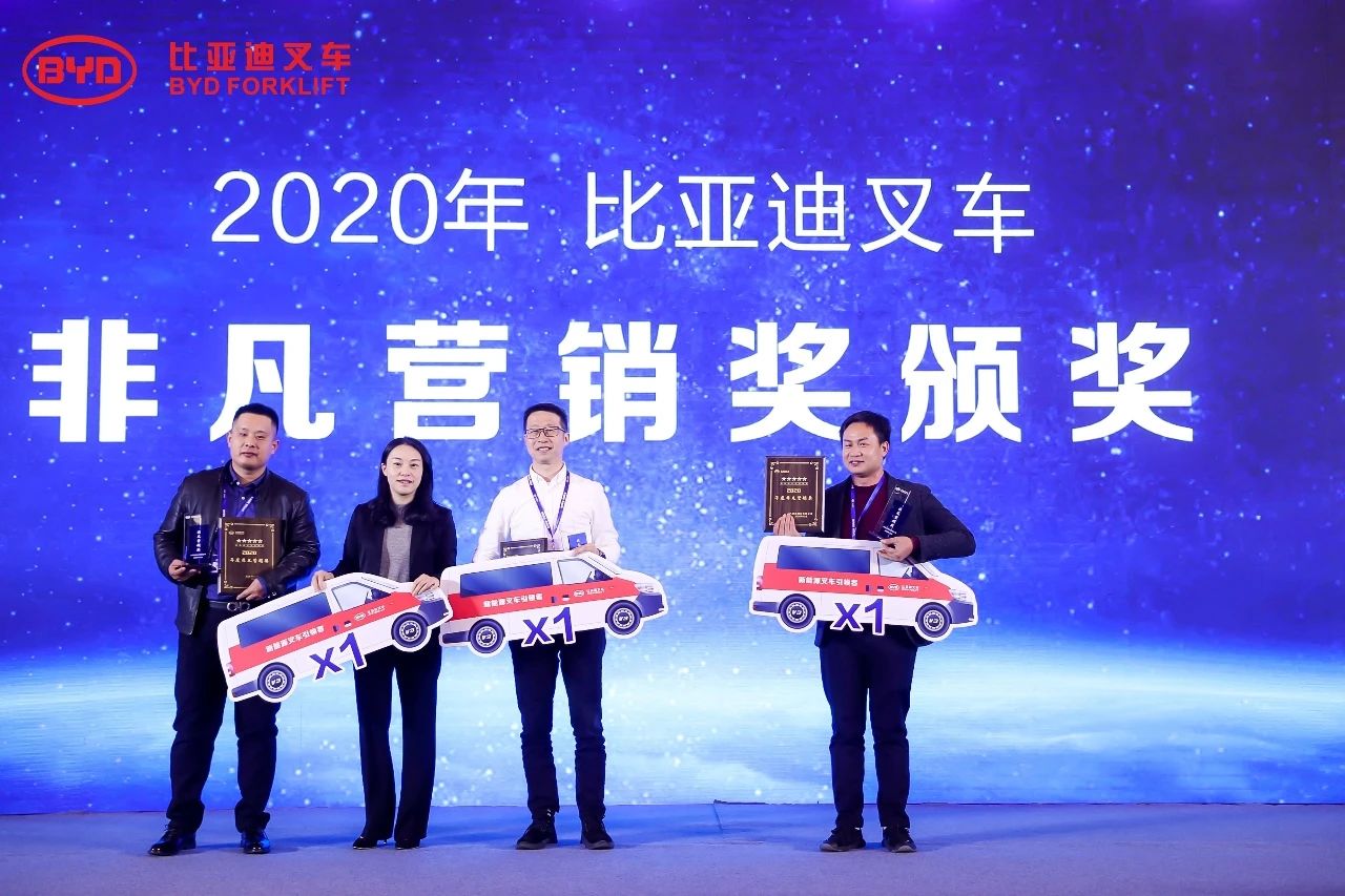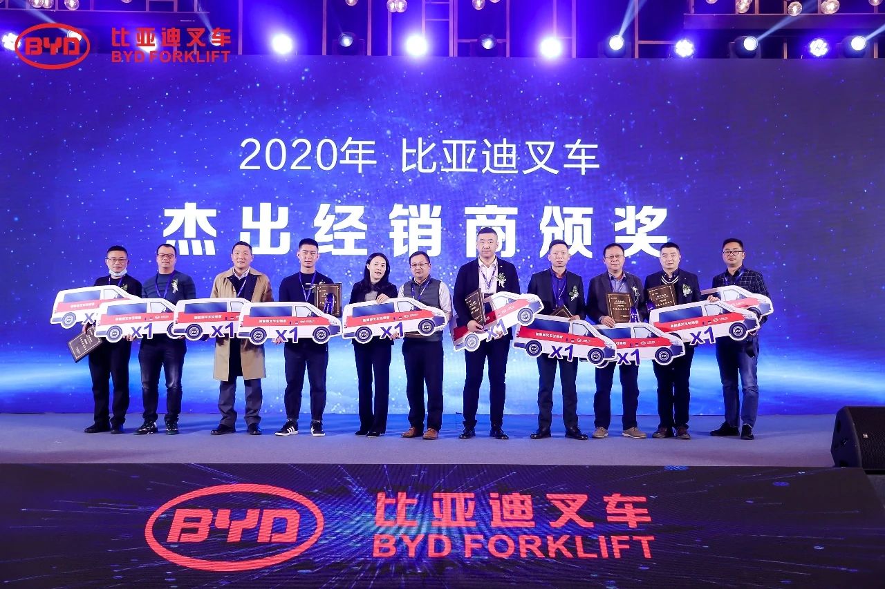 大會同時頒發了非凡營銷獎、卓越經銷商獎項,也對在2020年銷售業績表現突出的經銷商進行了獎勵,以感謝他們對比亞迪叉車發展做出的杰出貢獻。
