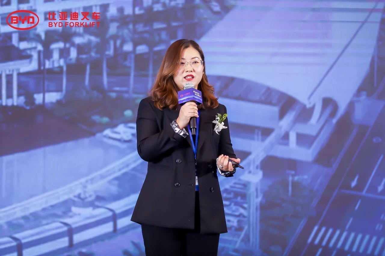 大會現場“高朋滿座,濟濟一堂”,比亞迪叉車國內銷售總監陳麗萍女士首先向在座來賓致歡迎辭。