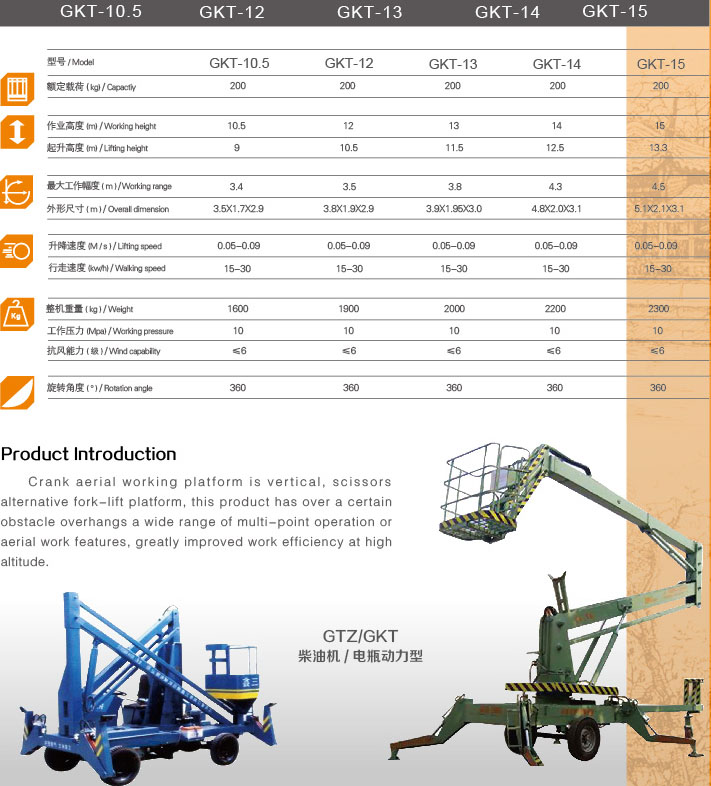 曲臂式高空作業(yè)平臺是垂直式、剪叉式升降平臺的替代品,本產品具有跨越一定的障礙物懸伸作業(yè)或大范圍多點高空作業(yè)的特點,極大地提高了高空工作效率。